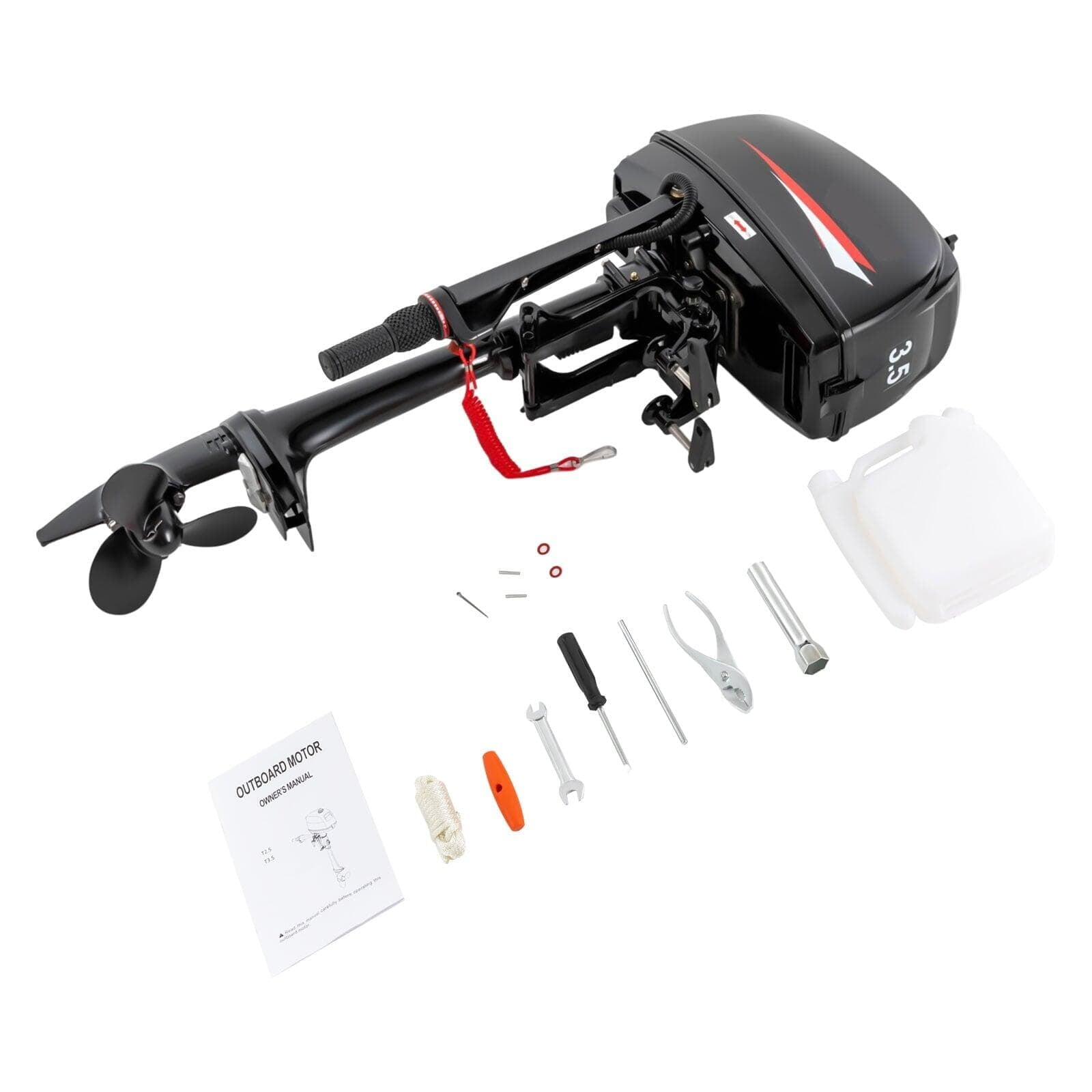 Complete Kit: This product includes an outboard boat motor, a tool bag, a proportioning pot, and an English manual, which can meet your usage needs.