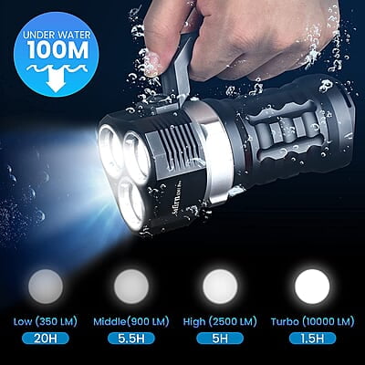 SD01 PRO FLASHLIGHT SET SCUBA DIVING 10000 LUMEN