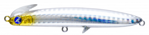 The lure's size has been reduced so that it can be used in a wider range of fields, not only in the open-area such as surf and rock, but also in rivers and harbours. In particular, the ease of use in strong winds is astonishing that sets it apart from other sinking pencils. The rear centre of gravity gives the lure a great flying distance and the twin-lip ensures that the lure grips the water firmly after landing and does not cause any missed action. The wide action allows the angler to feel the lure's resistance immediately after it hits the water, allowing the angler to control the line and easily approach the lure on its intended course, even in strong winds.