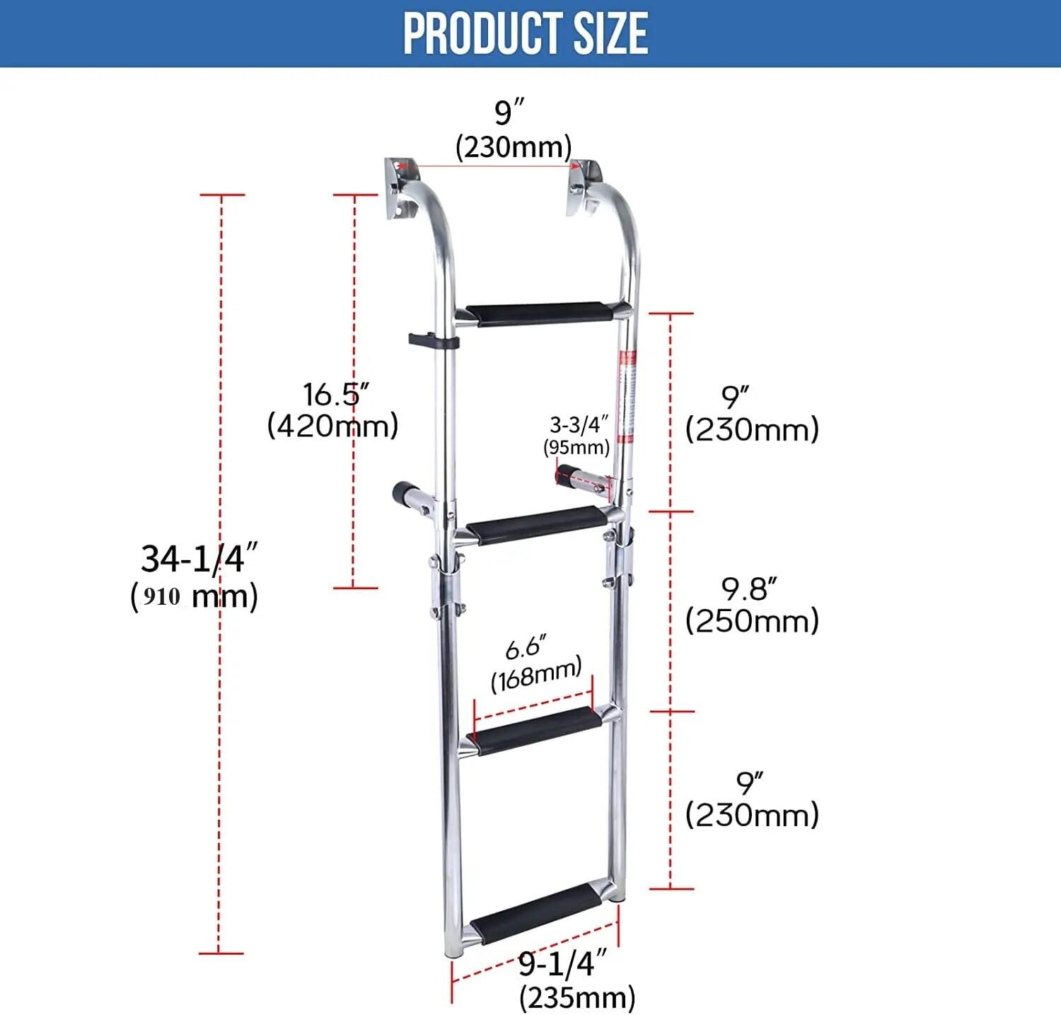 Durable construction - 316 Stainless Steel , with nylon bushing between ladder sections prevent galling and inadvertent deployment