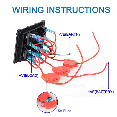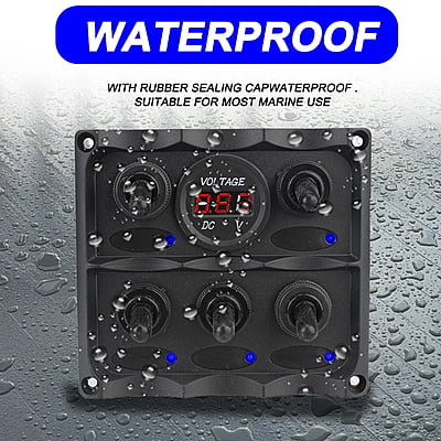 LED Rocker Switch Panel Circuit Breaker 5 Gang DC 12v Waterproof Voltmeter+Cigarette Lighter Plug