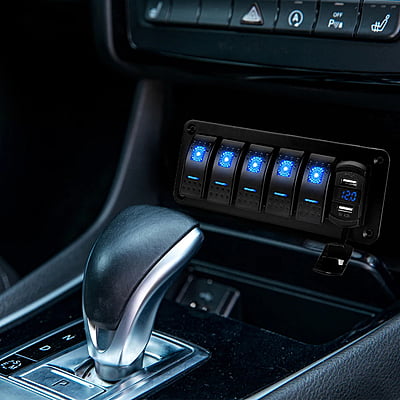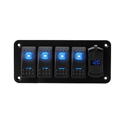 4 Gang Switch With LED Digital Voltmeter + Dual USB Aluminium Panel