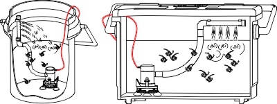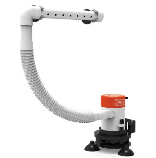 SEAFLO Aerates from 5 to 30 gallons (19 to 113 liters) of water. The SEAFLO 350 GPH (1325 LPH) pump attaches easily to any non-porous surface. 6.3” (160mm) long spray tube, 13.8” (350mm) hosepipe can be custom cut to fit into any container.The kit also includes battery clips for easy attachment to your 12 volt power source.