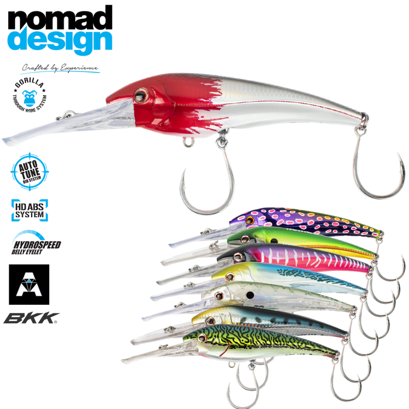 The unique body shape design creates a distressed baitfish swimming action, and the concealed Hydrospeed belly eyelet allows faster trolling speeds than conventional tow points. Combined with the Nomad designed Autotune tow point and bib system, this lure just keeps swimming deep, straight, and true, first time every time, no matter how many bites it takes.