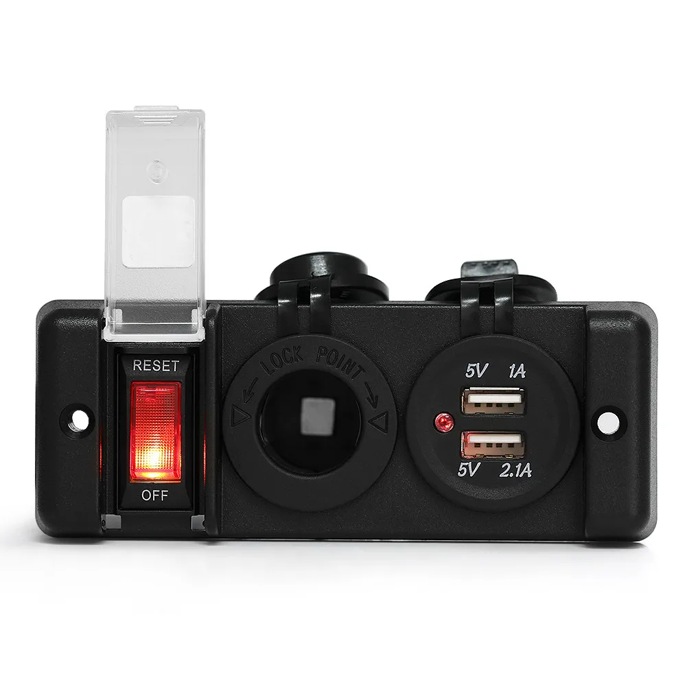 12V Waterproof Cigarette Lighter Dual USB Power Socket Switch Panel for Car RV Marine Boat
