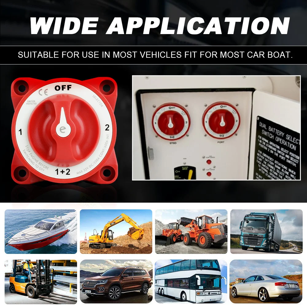 4 Position 32V 350A Luminous 2 Battery disconnect Switches Waterproof Isolator Disconnect Rotary switch for Marine Boat Truck RV